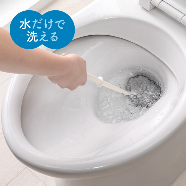 特殊形状の繊維を使用しているので、水だけでも汚れをかき落とすことができます。ブラシが繊維の束状で柔らかいので、便器のふち裏や水たまりの奥が洗いやすく、水はねしにくい。ケースに収納時、クリーナーが浮いているので清潔です。