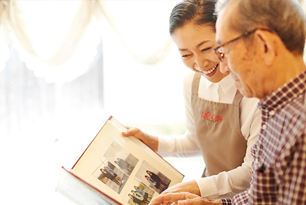 独自の研修を受けたスタッフが、軽度認知障害や認知症の方の言動やお気持ちを汲みとったうえで、生活のお手伝いをします。