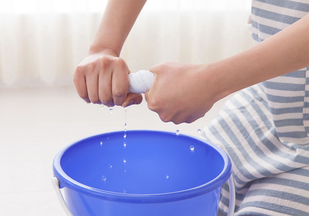 掃除機をかけたら、水に浸して固く絞ったタオルで拭き掃除を行いましょう。拭き掃除が終わったら、乾いたタオルで拭けばお掃除完了です。