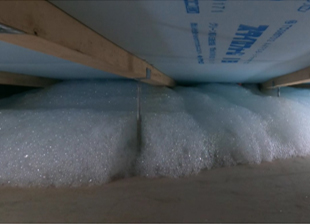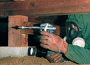 専用の機械で泡状にした薬剤を床上から流し込み、床下の隅々まで浸透させます。